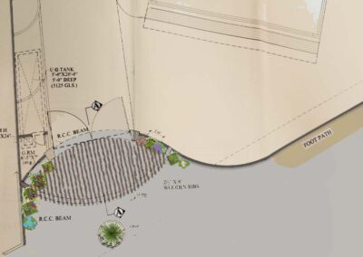 The concept arrives from the problem faced by the client, the circulation and parking issue arising from the blind corner of the road and the property. The design of the gate shows inspiration from a ‘SHELL’ reflecting its geometry through a punched in form adopted by a 20’ wide gate, the curve taking shape from the lines converging at a focal point which also serves as our dropoff.