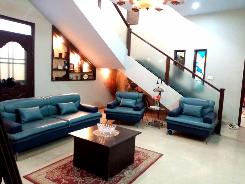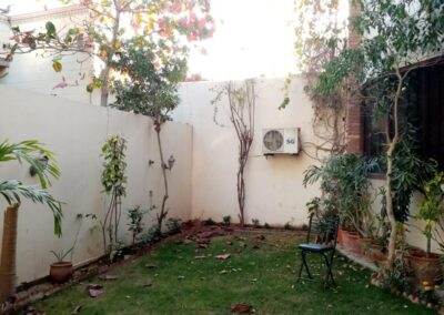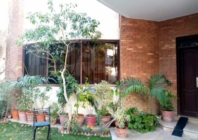 The main gate opens into a green lawn transitioning from public to semi-private to private spaces, leading towards the very drawing room, kitchen and dining segregated from bedrooms by an expansive open tv lounge (sitting area). The staircase to the first floor follows the same zoning plan but with a gigantic projected terrace.